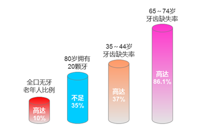 在我国,60岁以上的老年人中,不少人都有半口甚至全口无牙的情况,而且普遍缺牙时间较长,牙槽骨流失情况较严重,同时还长期伴有其他一些疾病,如牙周炎、心脑血管疾病、骨质疏松等。这样的老人要种牙,难度较大,手术风险也较高。所以,要求医疗机构不但要正规,更要专业,同时还要具备先进的医学技术。